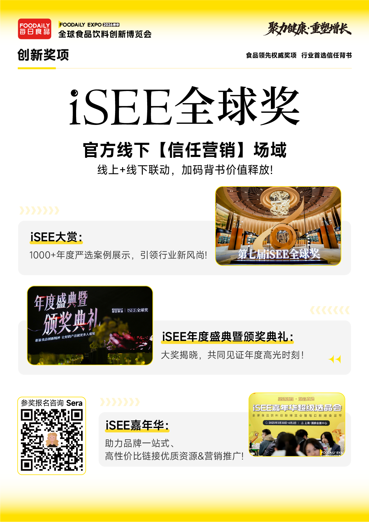 以“创新会议+创新品鉴+创新奖项”以及“未来健康食品生态展”为核心,2026 Foodaily创新博览会将全方位融合产业顶层思想、全球创新灵感与标杆品牌案例,为参会者呈现全球视野下的食品健康化、功能化系统升级全景图。